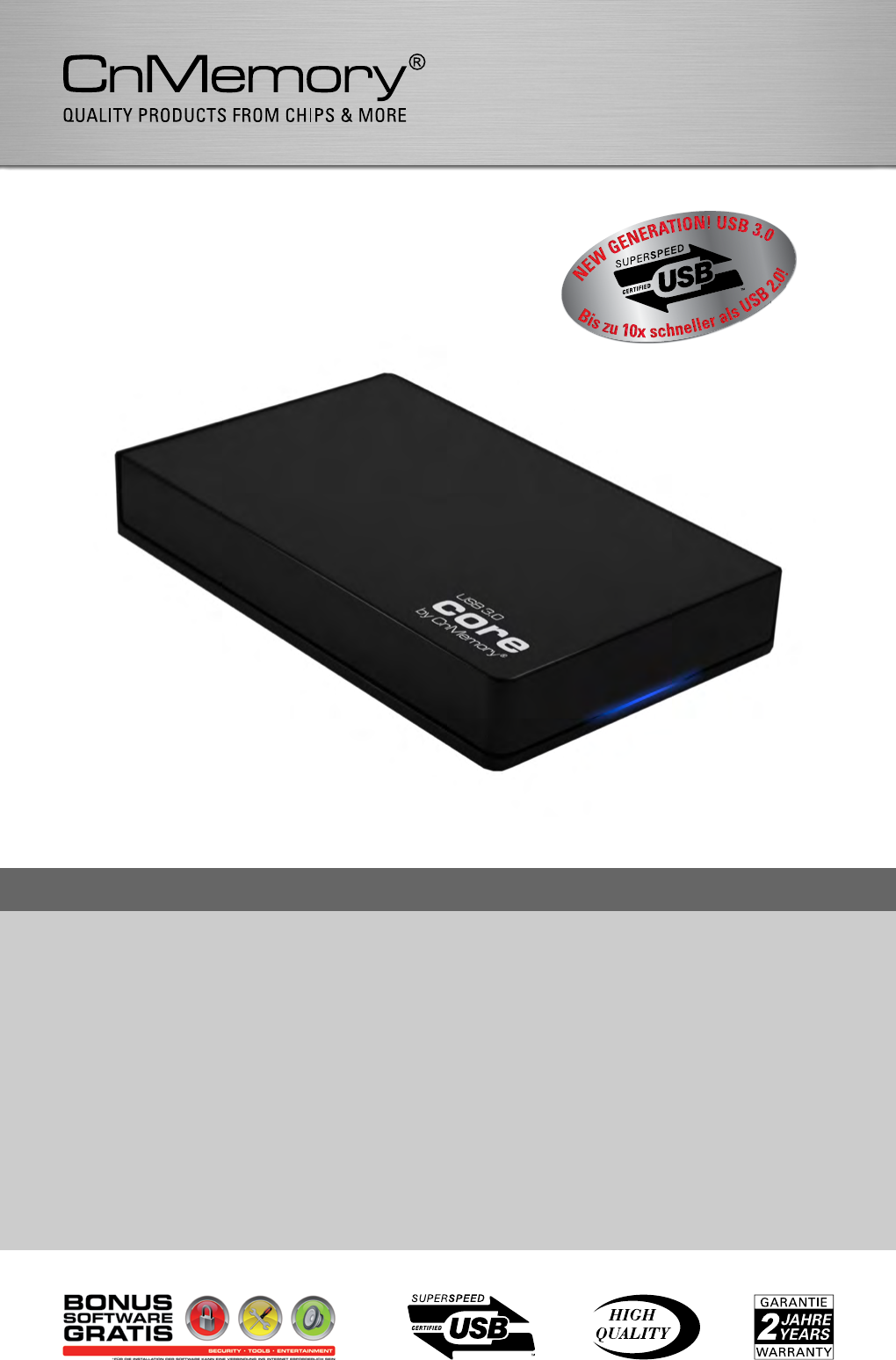 - Data transfer up to 5 Gbit /s, if used USB 3.0